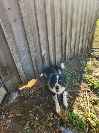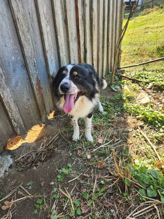 He is an outside dog. Hes half great Pyrenees and half border collie. He is 3 years old. He is used to being around goats dogs. He doesn't do great with chickens as he chases them.