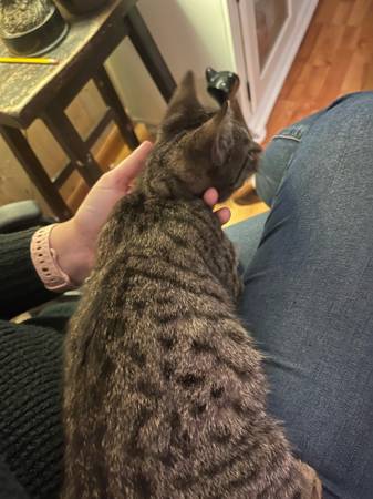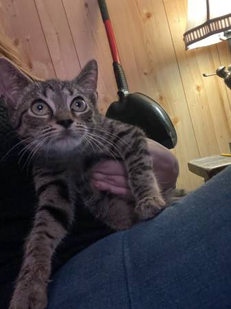 Sweet little kitten for sale, I want her to be loved and treated with respect, she is already potty trained, and is very smart and loving. Asking $50 for rehoming fee.