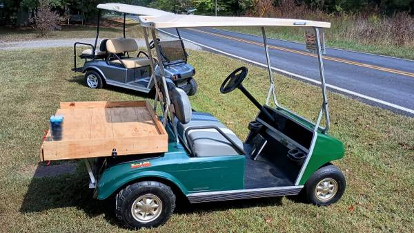 Great running cart with 3/24 batteries in it and has a nice size utility bed that's frame is aluminum with a 3/4" plywood flooring, 3 tie down hooks, LED headlight, aggressive rear tires for the pasture or property in general (cleated like a tractor) so you're less likely to get stuck, this was built with folks with limited mobility in mind. Thanks Darryl 33six93two2sixo4 call text or message me for more info, Have a great day!