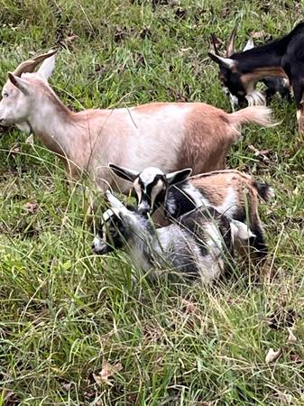 I have 3 Nigerian Dwarf bucks and 3 does that will be available in 2-3 weeks. $200 each. Born in August. Let me know if you need more specific information. I believe at least 2 are going to be polled. I have a mixture of colors. One or two have blue eyes. I can send additional photos. Bethany area of Rockingham County NC