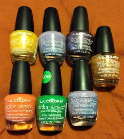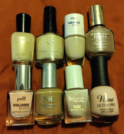 I have a couple glitter polishes as well as funky colors and nude colors.