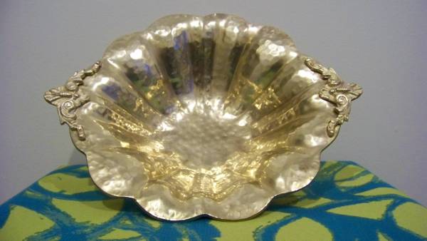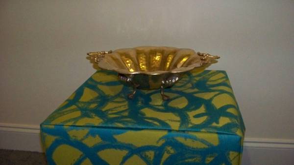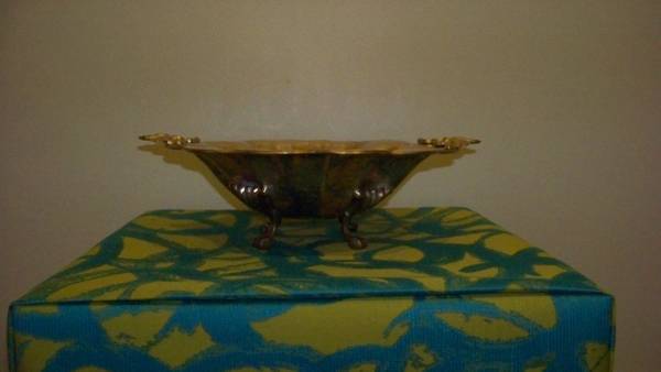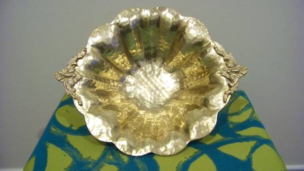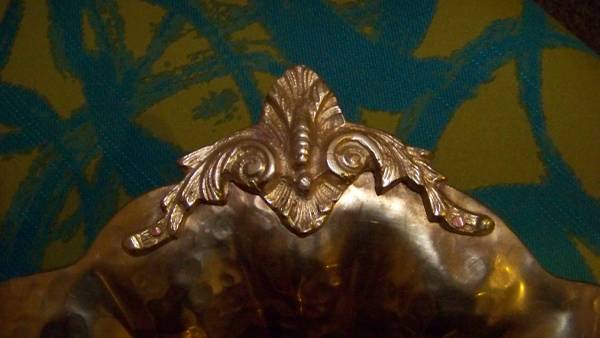 Solid Brass Serving Bowl with elegant details. Measures 15 1/2" x 12 1/2" across top sides and x 4 1/2" tall
