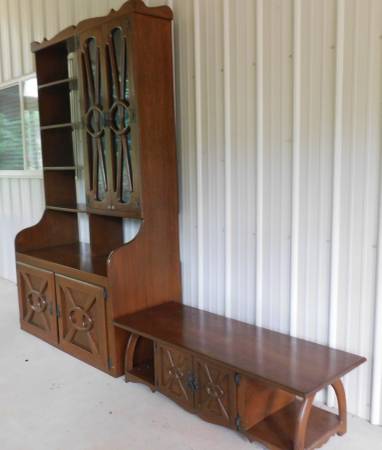 VINTAGE HANDCRAFTED HONDURAS MAHOGANY (very rare, expensive wood) GUN CABINET, BOOK SHELF, STORAGE CABINET WITH MATCHING COFFEE TABLE. UNIQUE ONE-OF-A-KIND HANDMADE/HOMEMADE. GUN CABINET DOORS HAVE LOCKS & COMES WITH 2 KEYS.