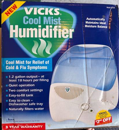 VICKS Cool Mist Humidifier. Unused, still in unsealed box. Filtered cool air. See pictures for better description.