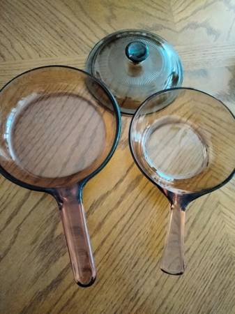 Vision Ware Corning Pyrex Amber Glass Pot's 11 1/2" x 7" Pot 9 1/2" x 6" Pot and Lid Excellent Condition, Never Used $15.00 for all 3