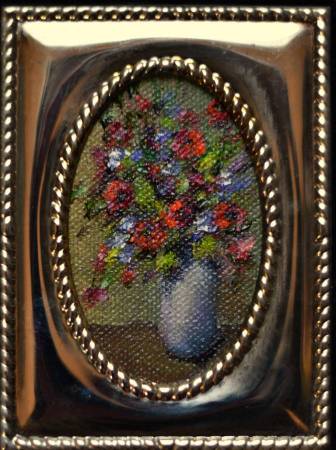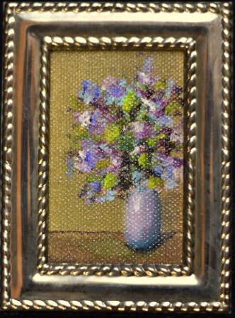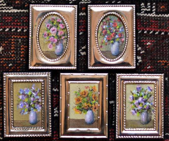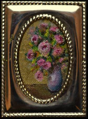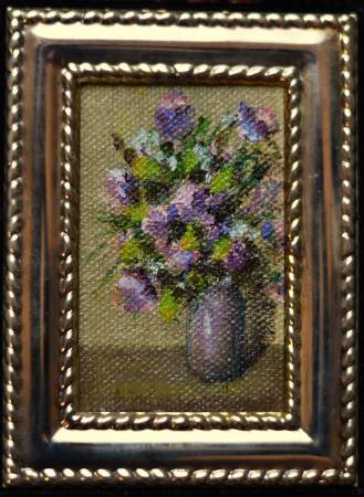 Five original oil painting, tiny florals with impressive, expressive brush strokes. They are about 2x3 and the frames make them almost 4 inches by 5 inches What a thoughtful gift for you to give to your friends or anyone you care about. Of course, having these on your bedside table would be a wonderful way to sooth yourself to sleep! You need them.