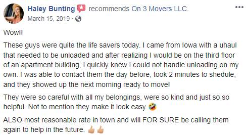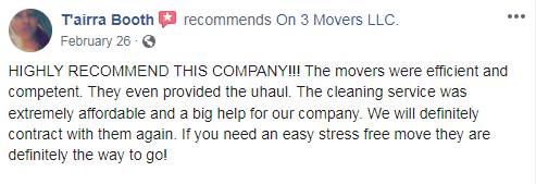 We offer the most affordable rates, knowledgeable-strong teammates and premium customer service, guaranteed!!! We're here to do all the hard work for you. Book with us at On 3 Movers!!!