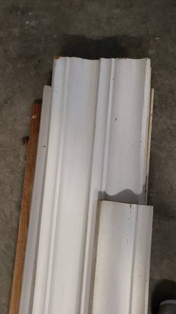 200+ linear feet of solid wood (fir??) primed 5" baseboard. 10 16' pieces, 1 15' piece and 2 shorter pieces. None of the pieces are warped, but some need some clean-up (and, yes, they will clean up...