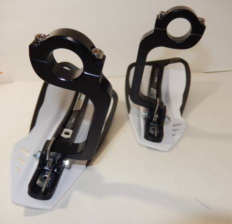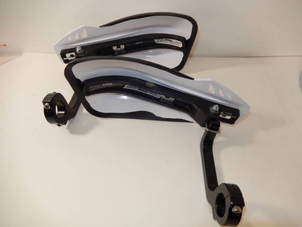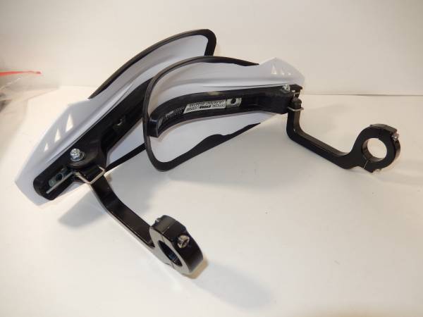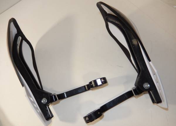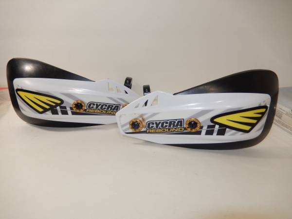 Lightly used pair of Cycra Rebound Handguards and Mounts. Hardly any time on them at all. White with black mounts. Neat spring loaded return on them to keep them from breaking.