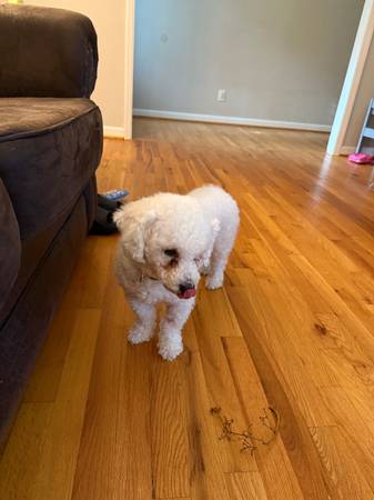 Pure bread bichon frise male 1.5 years old. Small rehoming fee Contact me for further information.