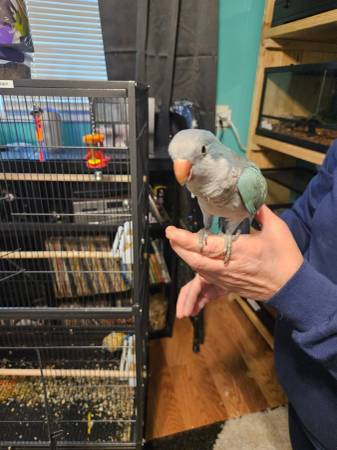 2 Quakers first 2 photos are DNA male 2nd picture is DNA female They are 4 months old and have been being handled both are very sweet cage does come with! Located near Greensboro nc!pm for more info😁