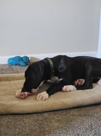 Great dane puppy for adoption. Has puppy vaccination paperwork already. Super sweet. Not registered. He will be massive like his father. Already over 80 lbs.