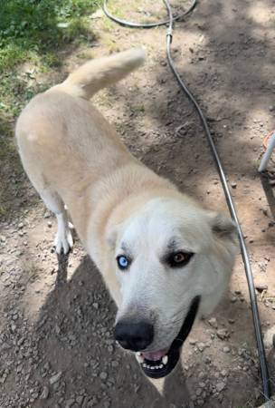 Sweet, goofy boy named Cy, approx 100lbs and 5 years old, needs a new home with a fenced yard or able to get lots of walks. Best as an outdoor dog (has been in a fenced yard, would likely not do well tied up) but can be okay inside - beware of shedding and he would need work with not stealing food - he is counter height. He is good with larger livestock but nothing smaller than a goat - he will kill cats and chickens. We’ve learned this the hard way and is why we’re looking for a new home for him. Small rehoming fee to be discussed, if interested please email listing back.