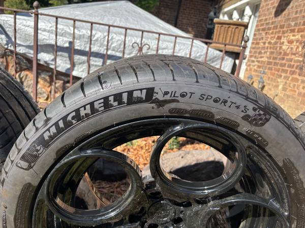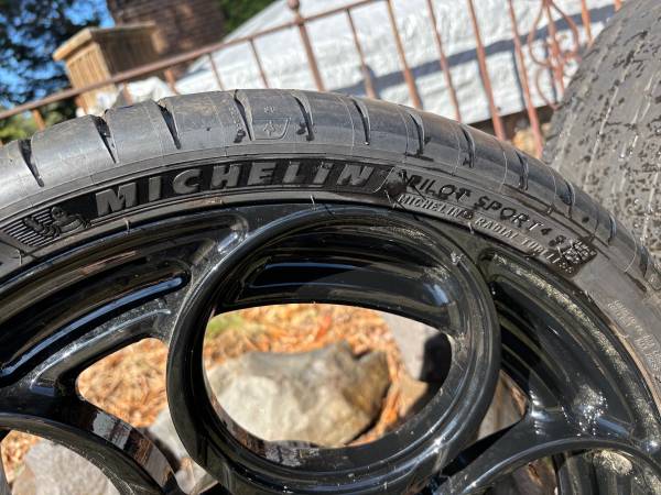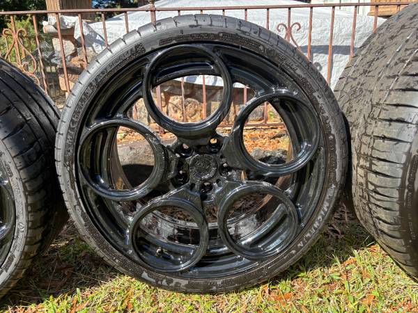Original cost $14,000.00 These wheels just came off a Lamborghini Huracan and were just powder coated Gloss Black. New Michelin Pilot Sport tires never driven on, zero miles. Front: 19x8.5 + 25...