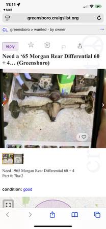Need a 1965 Morgan Rear Differential 60 + 4 Part #: 7ha/2 Negotiable Price