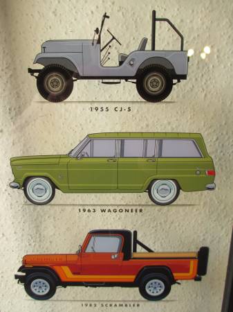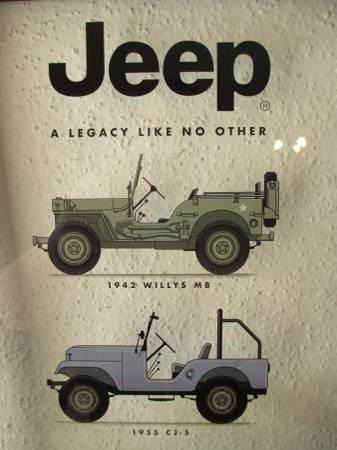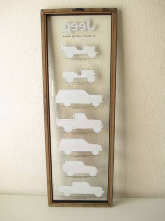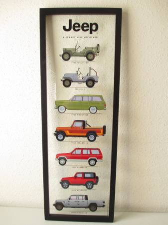 Scarce JEEP & Willys History Glass Wall Hanging 1942- 2020 1942 Willys MB 1955 CJ-5 1963 Wagoneer 1982 Scrambler 1996 Cherokee 2010 Wrangler 2020 Gladiator 336 three three nine 4527 Text or Call...
