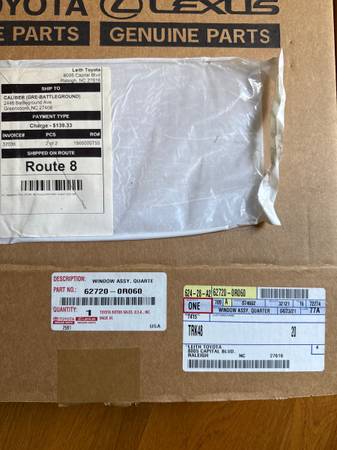 New Toyota RAV4 rear driver side quarter window. New in the box genuine Toyota part. 62720-0R060