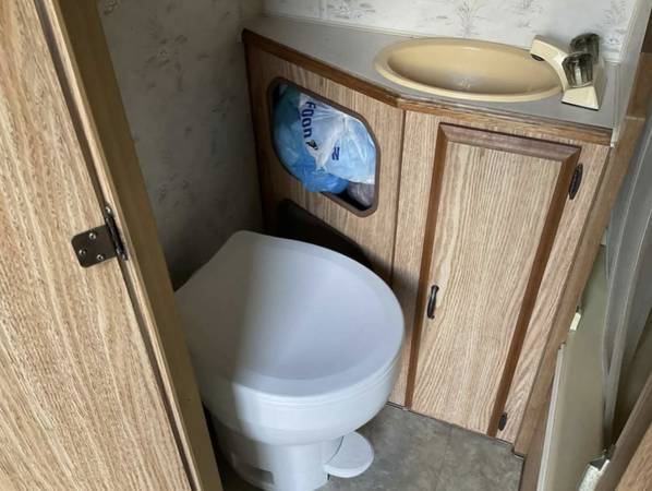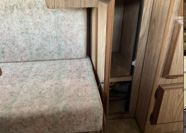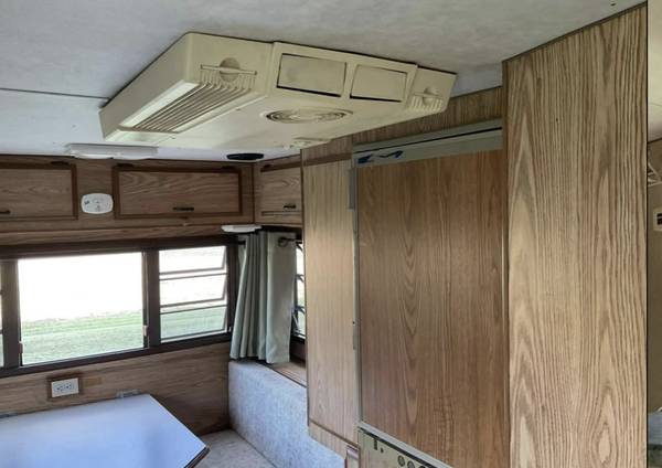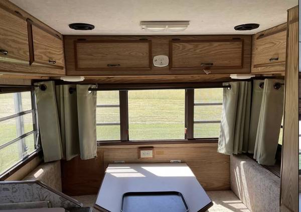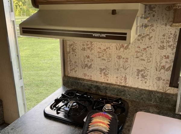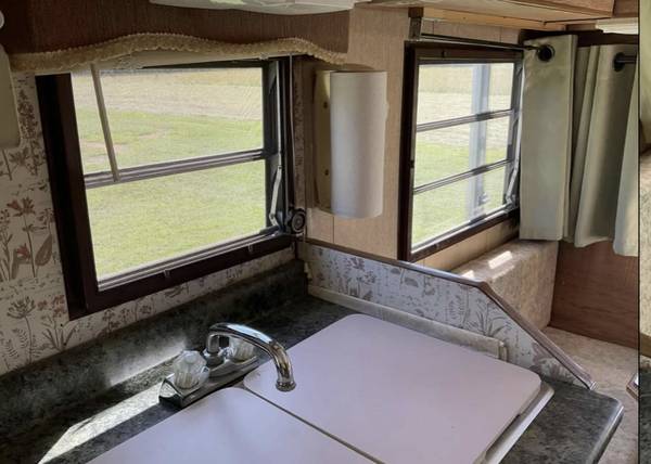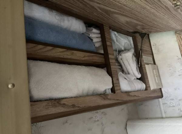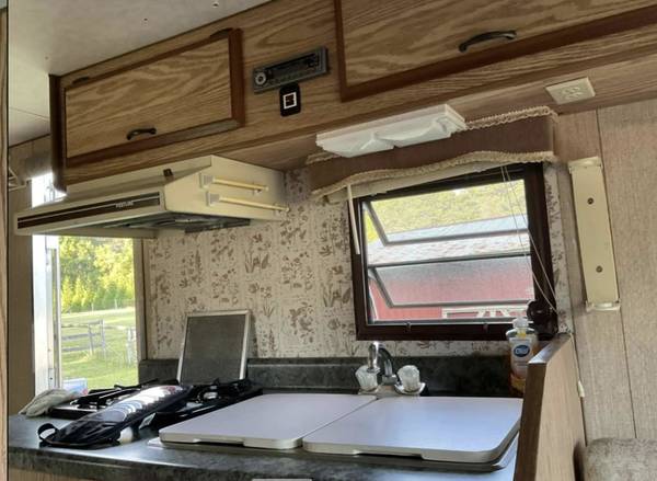 Radio, CD player, is above sink with 4 ceiling speakers: 2 over table, 2 over queen bed