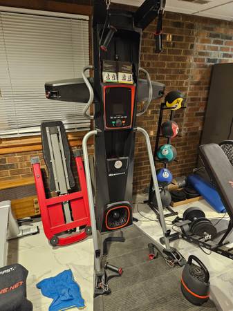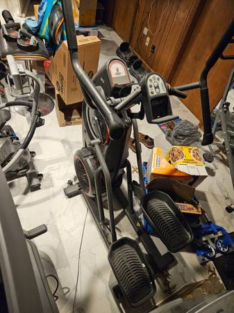 Rowing machine -Sunny Fitness Recumbent bike - " Back stretcher - " Assisted squat - " Ab n squat - Stamina Stepper elliptical - Bowflex Cable machine- " Treadmill - Golds Gym Adjustable bench...
