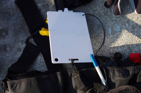 bag with scuba book / journal, pen, marker, and decal for car or boat