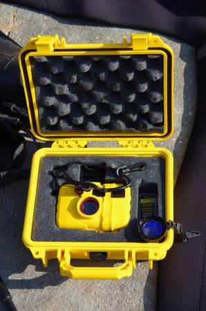 camera in waterproof case inside rugged padded waterproof case with lens? and extras