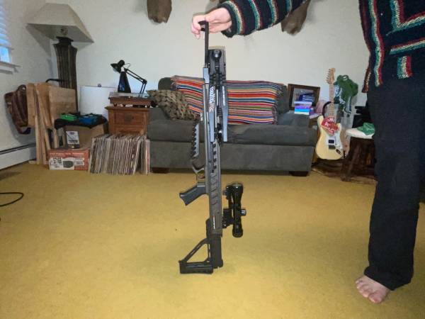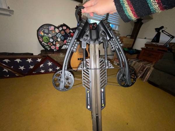 Bought as a present, only used 10 times maybe. Well kept in a smoke free house. Loys extras and the 100$ hand crank adapter to help draw the bow easier. Case, extra arrow and quiver. See pictures...