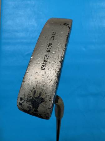 Putter head is engraved with the message "24 KT. GOLD PLATED", but it looks like most of the head was painted over with black paint, which seems to now be chipping off (see pictures). I think with a little cleanup this could be a really nice looking putter and I know that the design is excellent for accurate putting!