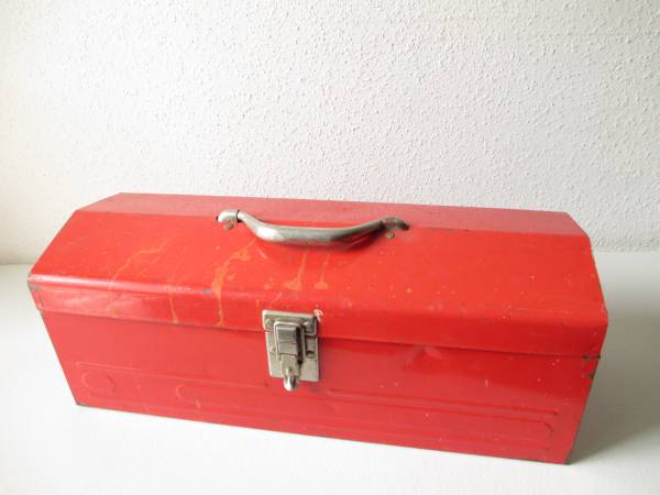 Vintage RED All Metal Tool Box With Removable Interior Tray 336 three three nine 4527 Text Call eMail