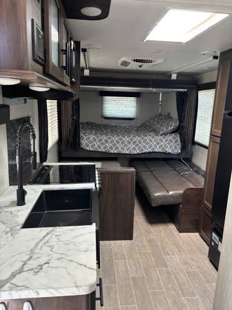 Travel trailer camper in pristine condition. Never been “any poo in the loo!” Mattresses still covered in plastic. Sleeps 7, it was perfect for our family of 5 even as the kids grew to the size of adults! Kids have gone to college, only reason we are selling. Never had any problems with bugs or water. Tires have always been kept covered as well as A/c unit. Very loved, well cared for camper that is ready for its next adventure! Serious inquiries only, view by appointment